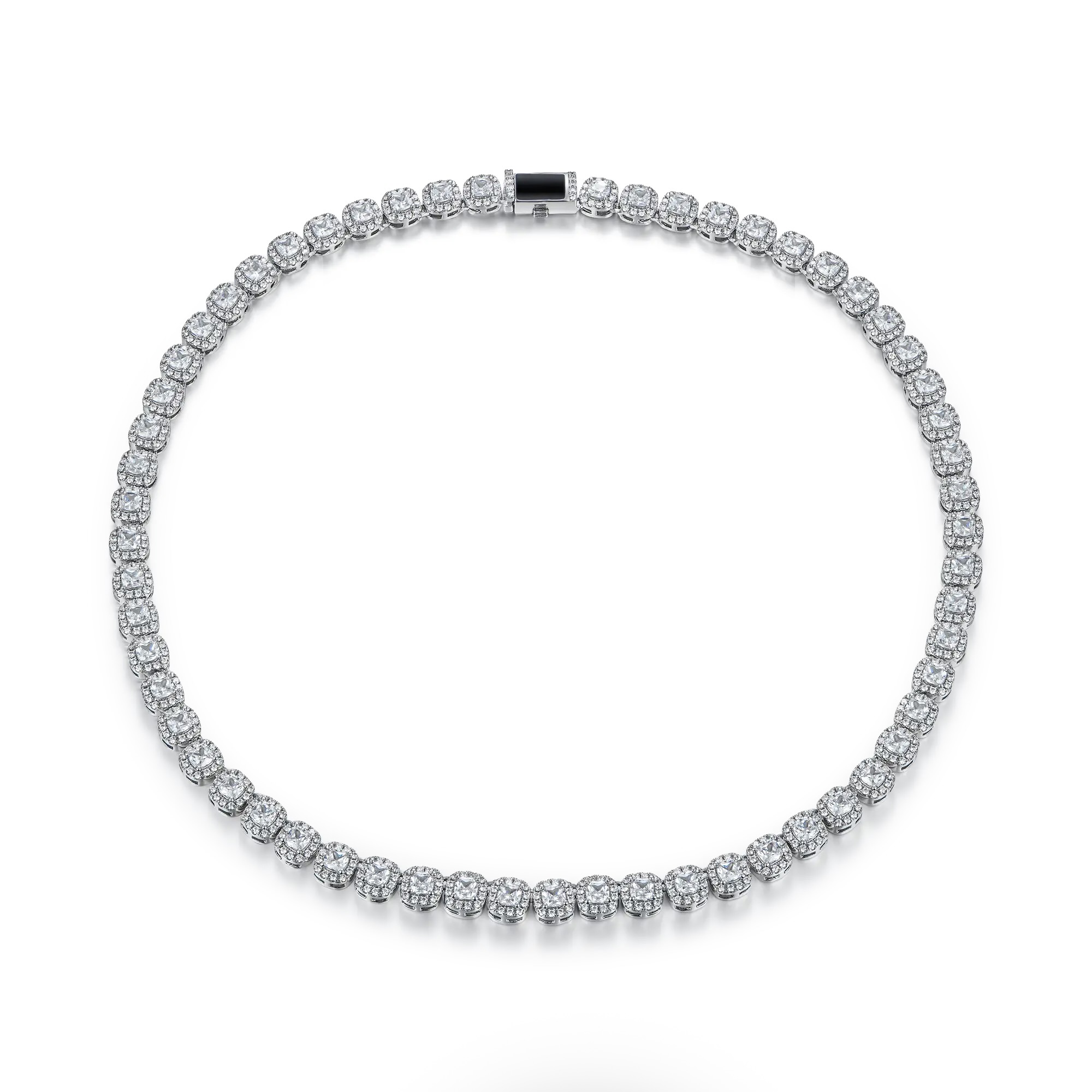 7mm Moissanite Cushion-Cut Cluster Tennis Chain Necklace