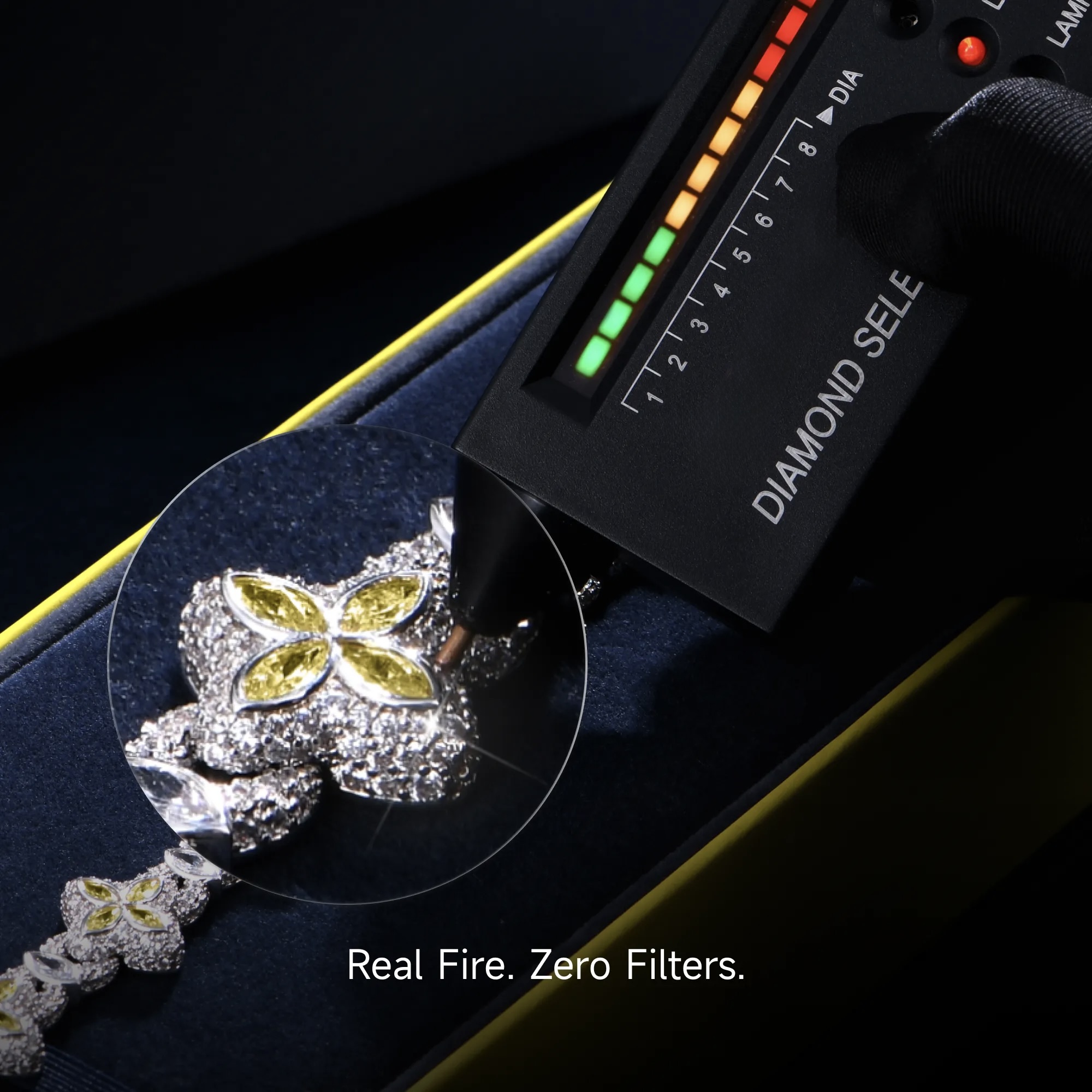 The Elegant Moissanite Luminous Clover Bracelet – Yellow Diamond is a classic clover-inspired design with sparkling moissanite stones that look like diamonds. It is light and elegant, and it gives a touch of grace to any outfit. This bracelet is made to last and be comfortable, so you may wear it every day or on special occasions.