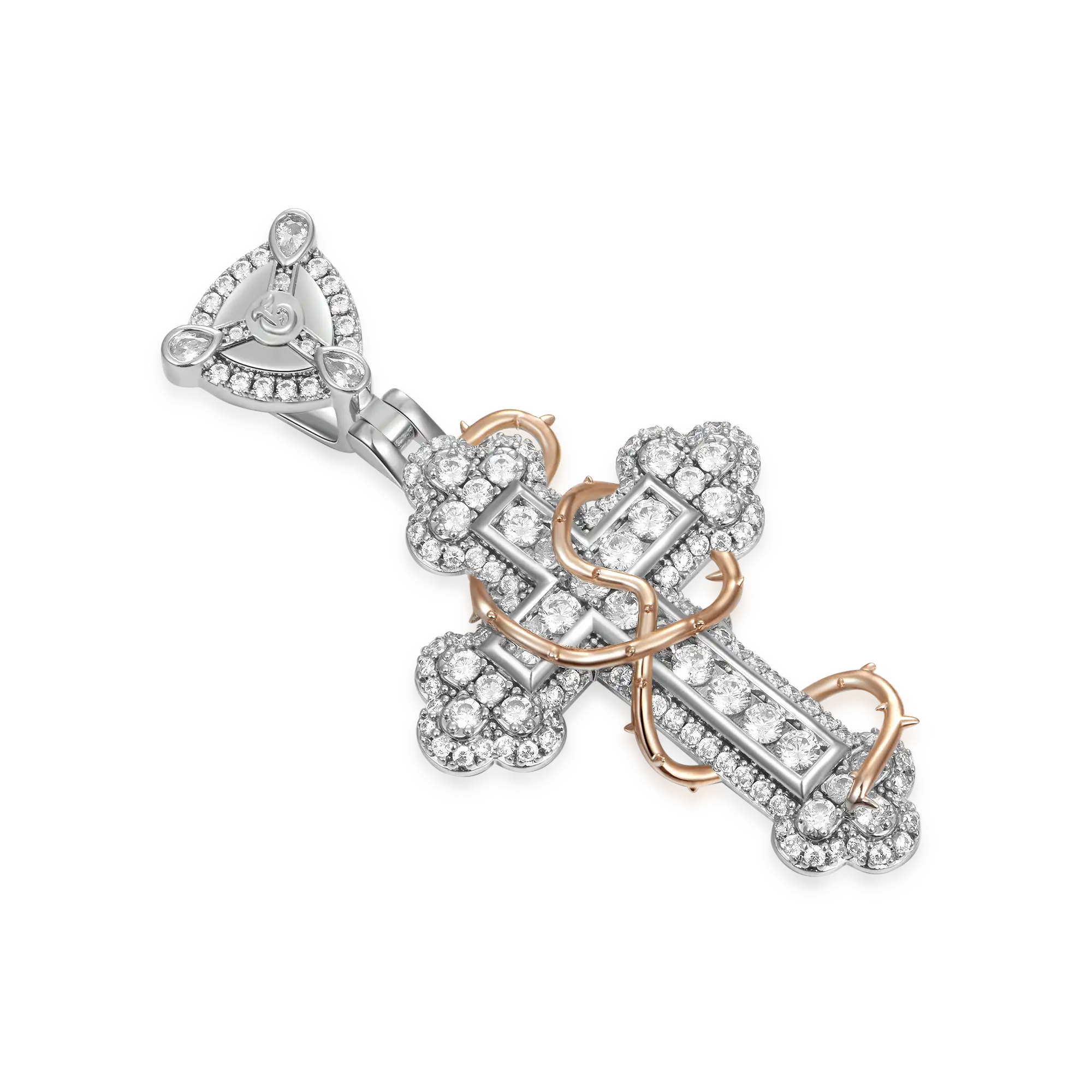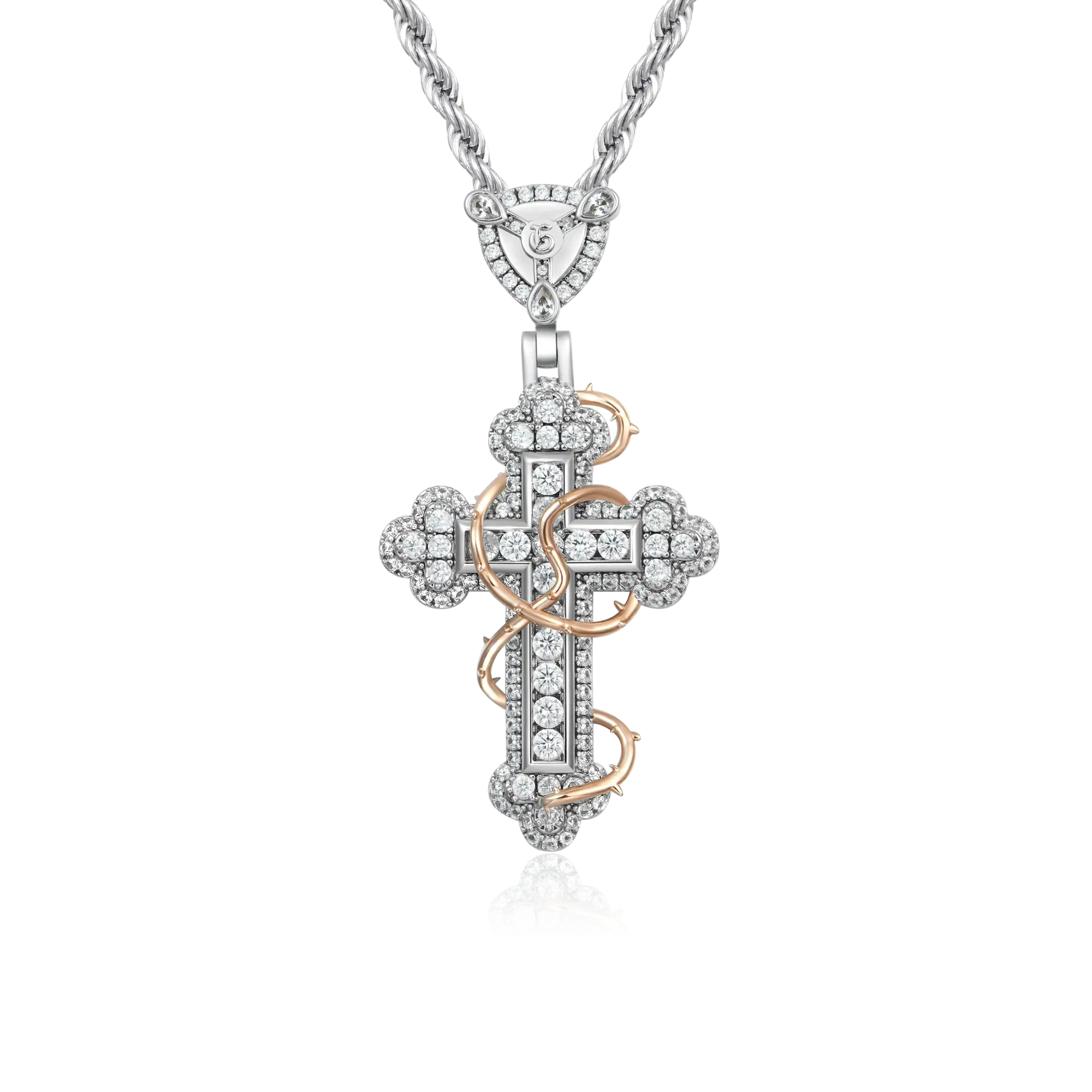 Iced Thorned Blossom Cross Moissanite Pendant – Small