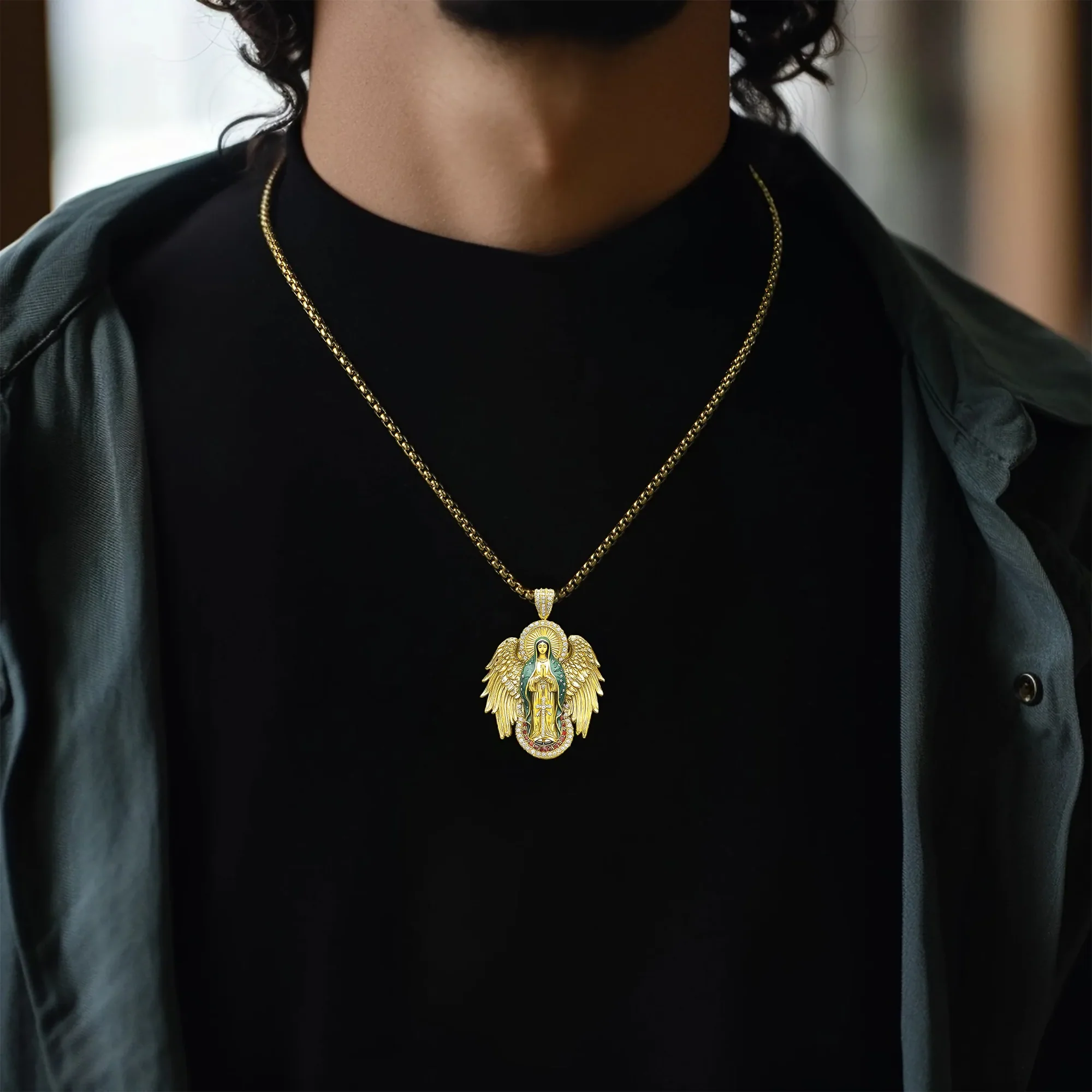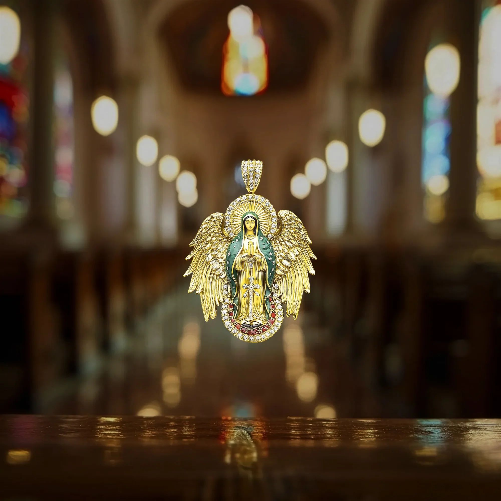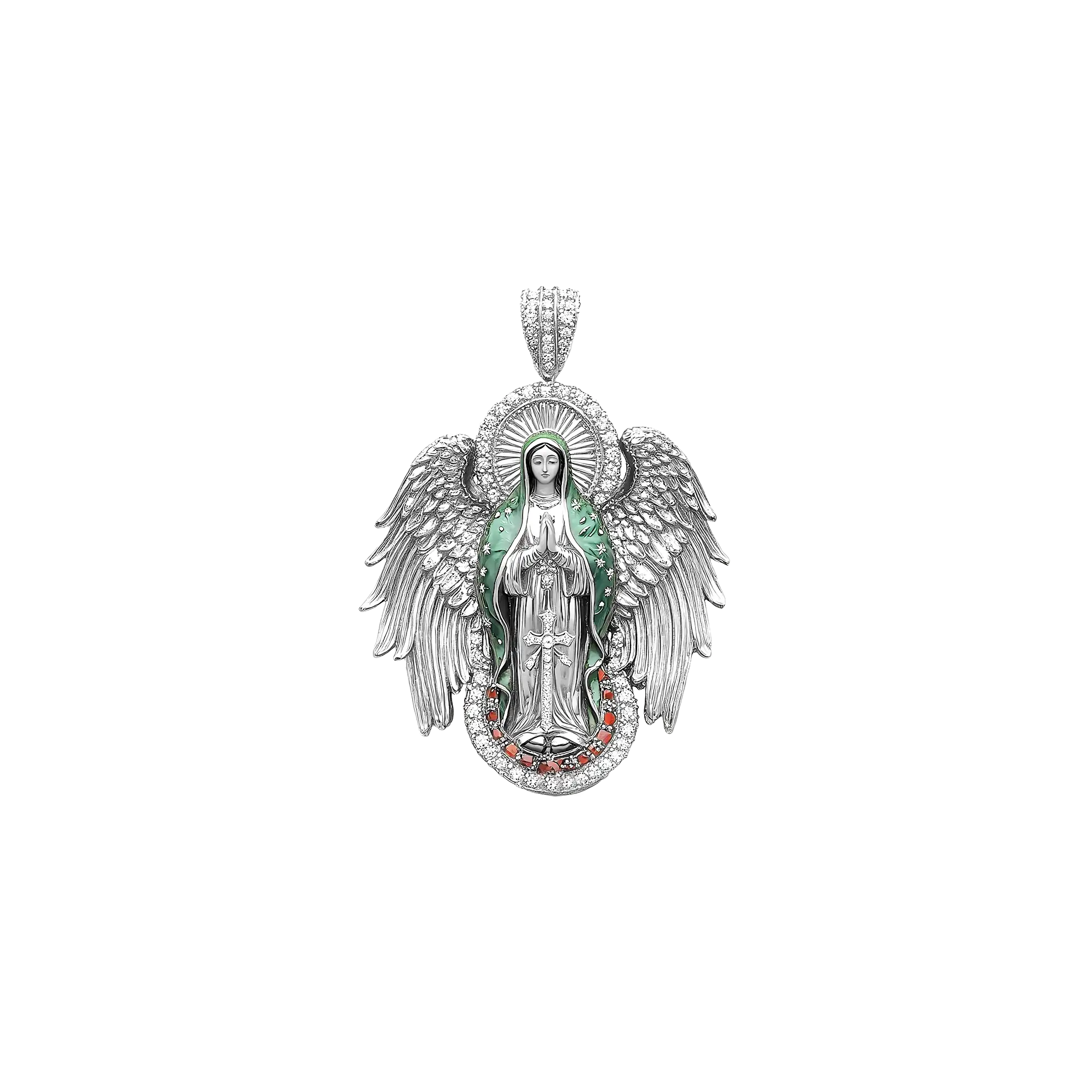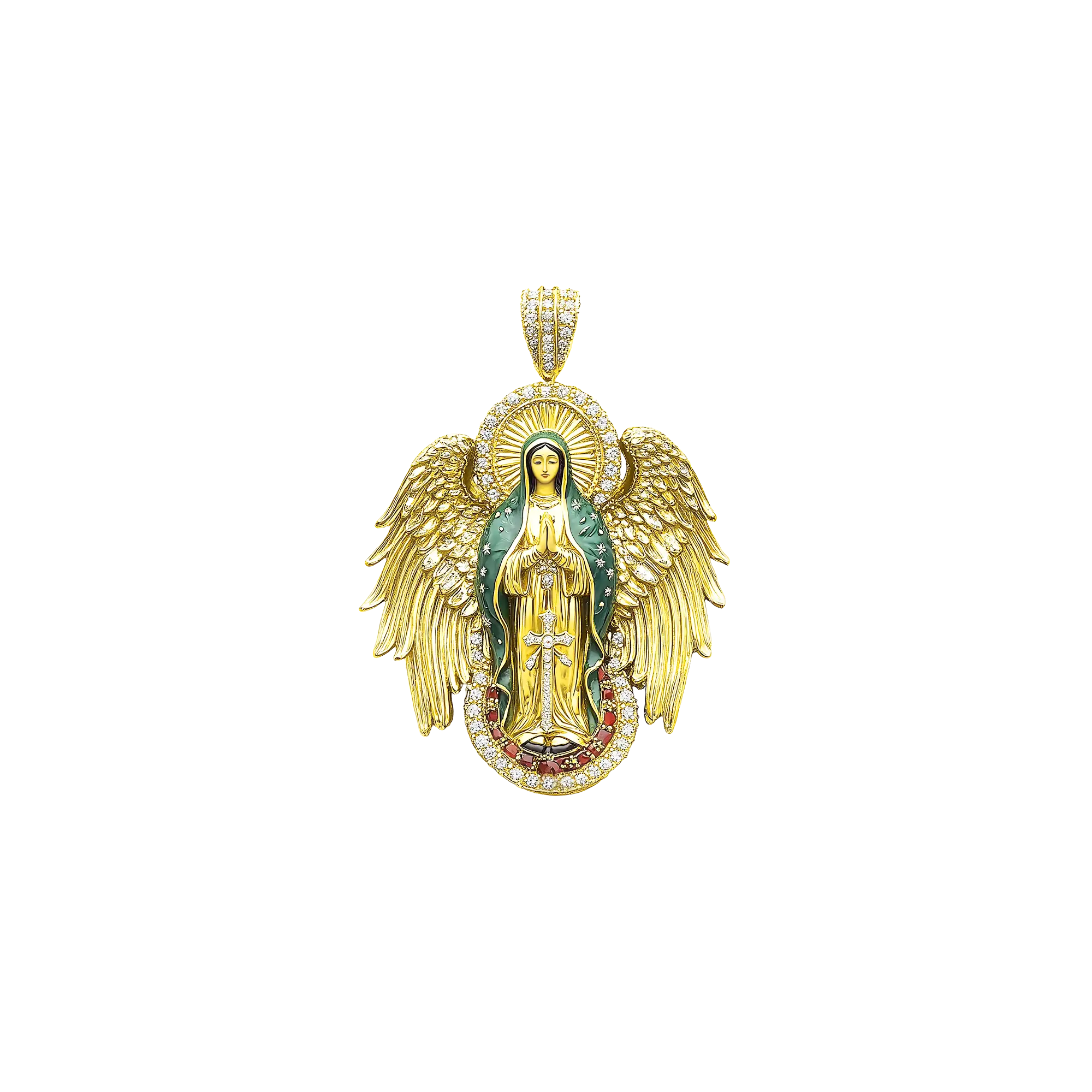 Luxury Blessed Mary Halo Winged Moissanite Pendant