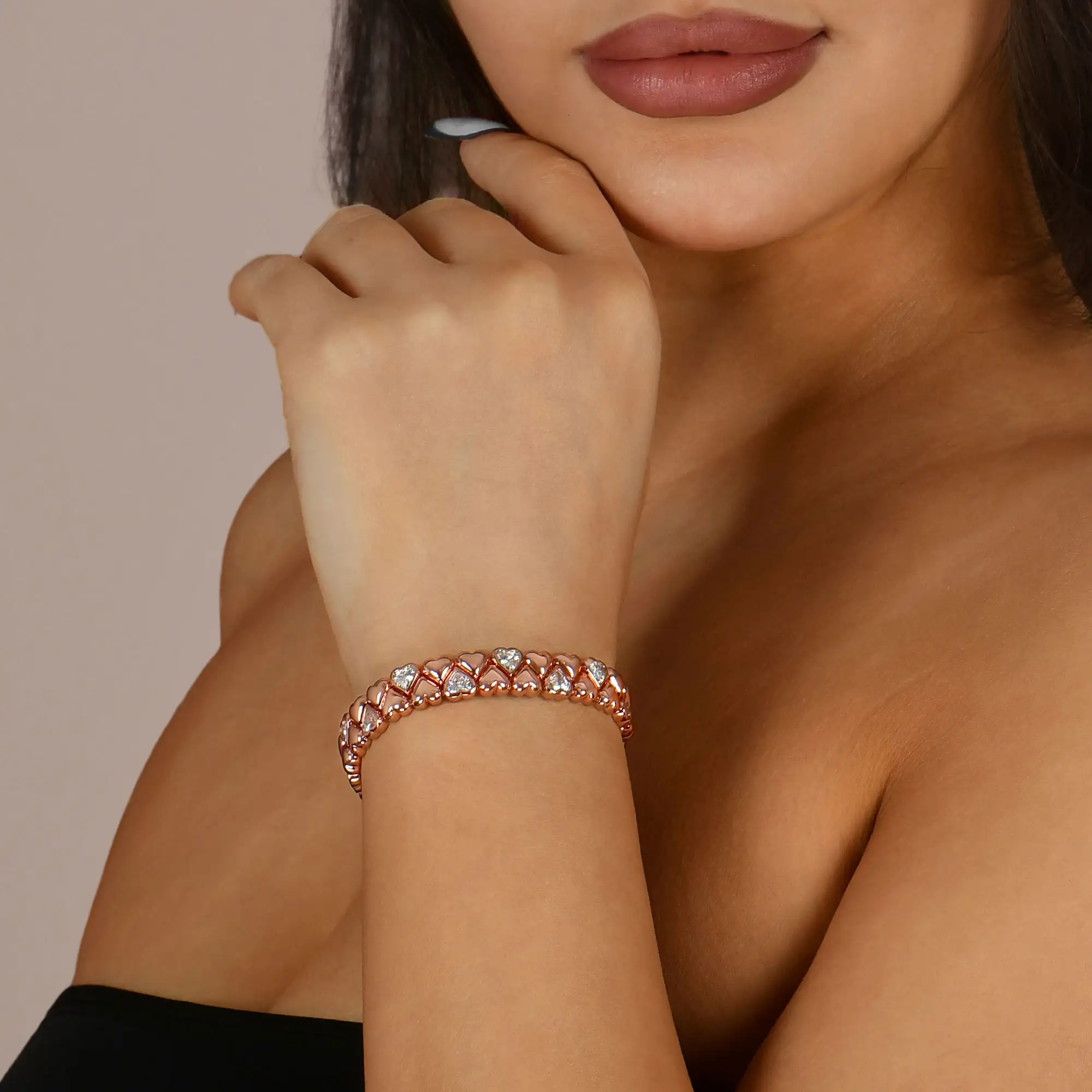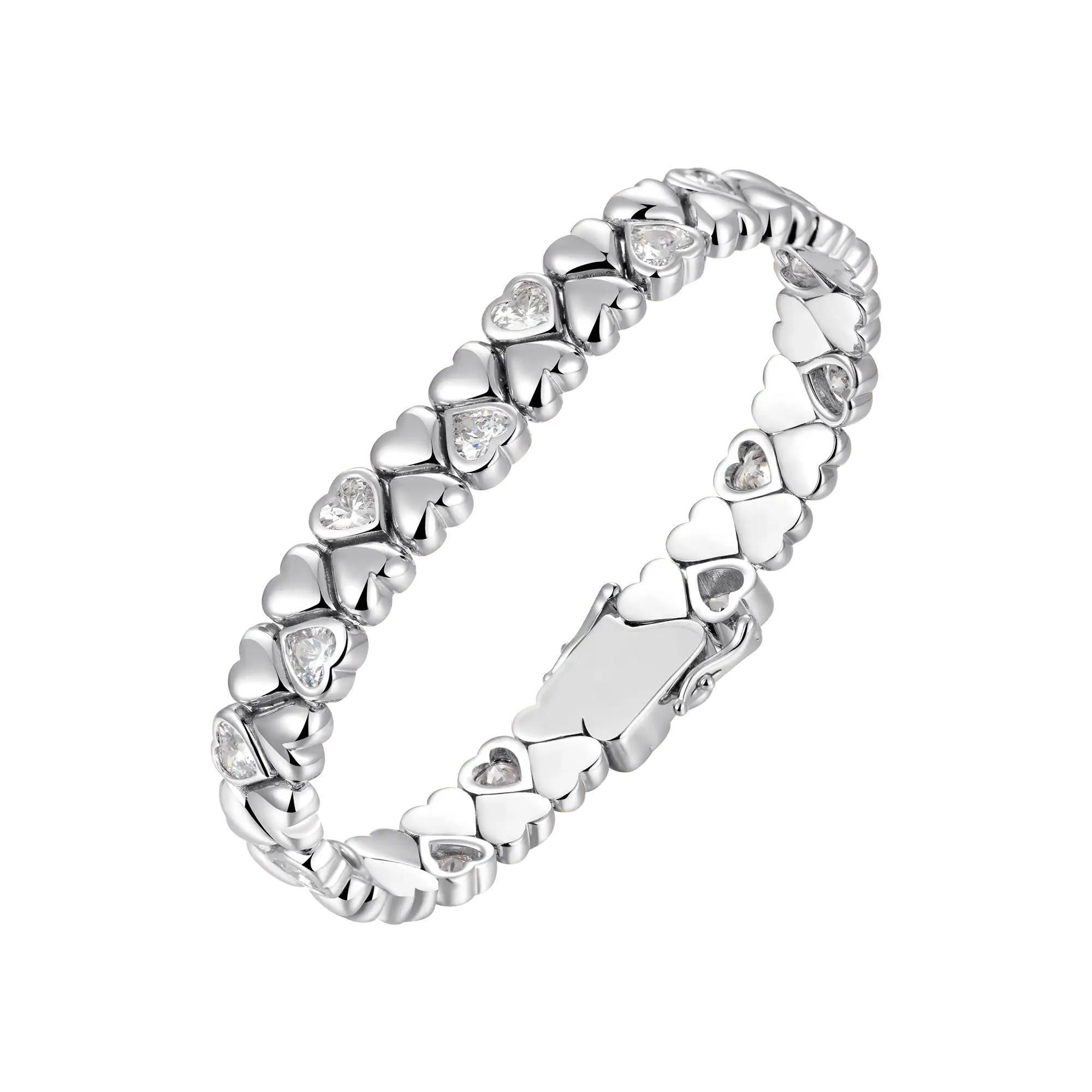 With its creative heart-link design, the Twinkle Heart Bracelet offers a modern interpretation of classic romance. A dynamic flow of beauty and elegance is created by the seamless connection of each heart. Dazzling heart-shaped jewels add layers of refinement and splendor to some hearts. Its distinct character is enhanced by the staggered layout, which strikes a balance between elegance and playfulness.