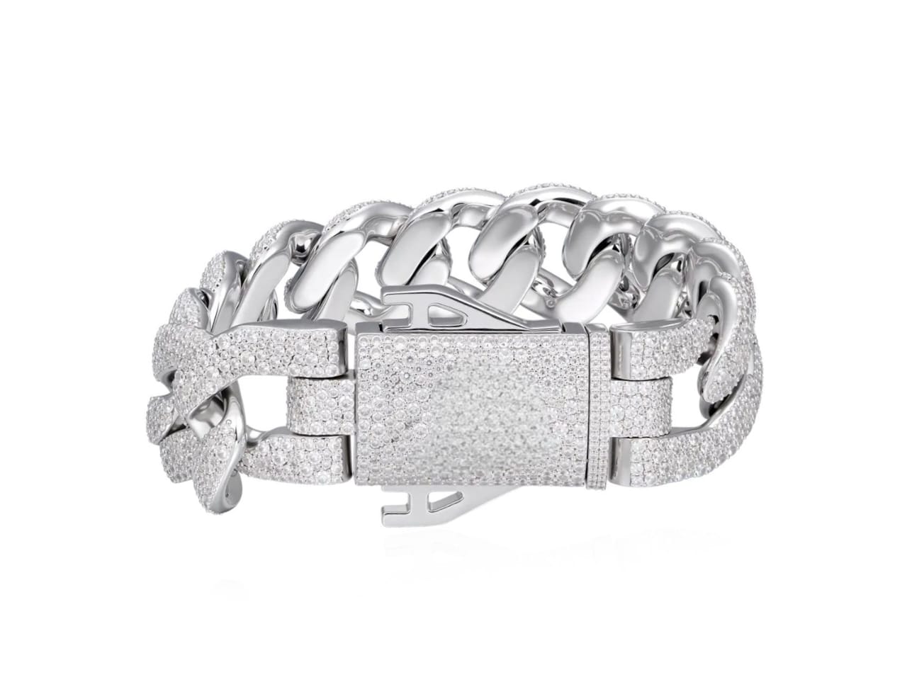 This Cuban link bracelet-19mm is completely covered in diamonds, which is a great example of the unique style and energy of hip-hop culture. A row of spherical stones decorates each part of the bracelet. The pressure clasp closing not only keeps the 19mm bracelet safe, but it also fits in with the style of the chain, making the whole thing look seamless. The Cuban link is a unique part of hip-hop culture that stands for strength and freedom. The bracelet has more cultural meaning when you add the diamond-studded pattern to it. It is not only a fashion accessory, but it is also a tribute to hip-hop culture and its principles, which include freedom, independence, and being yourself.