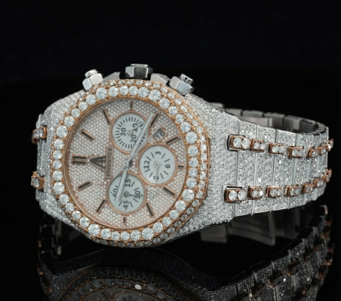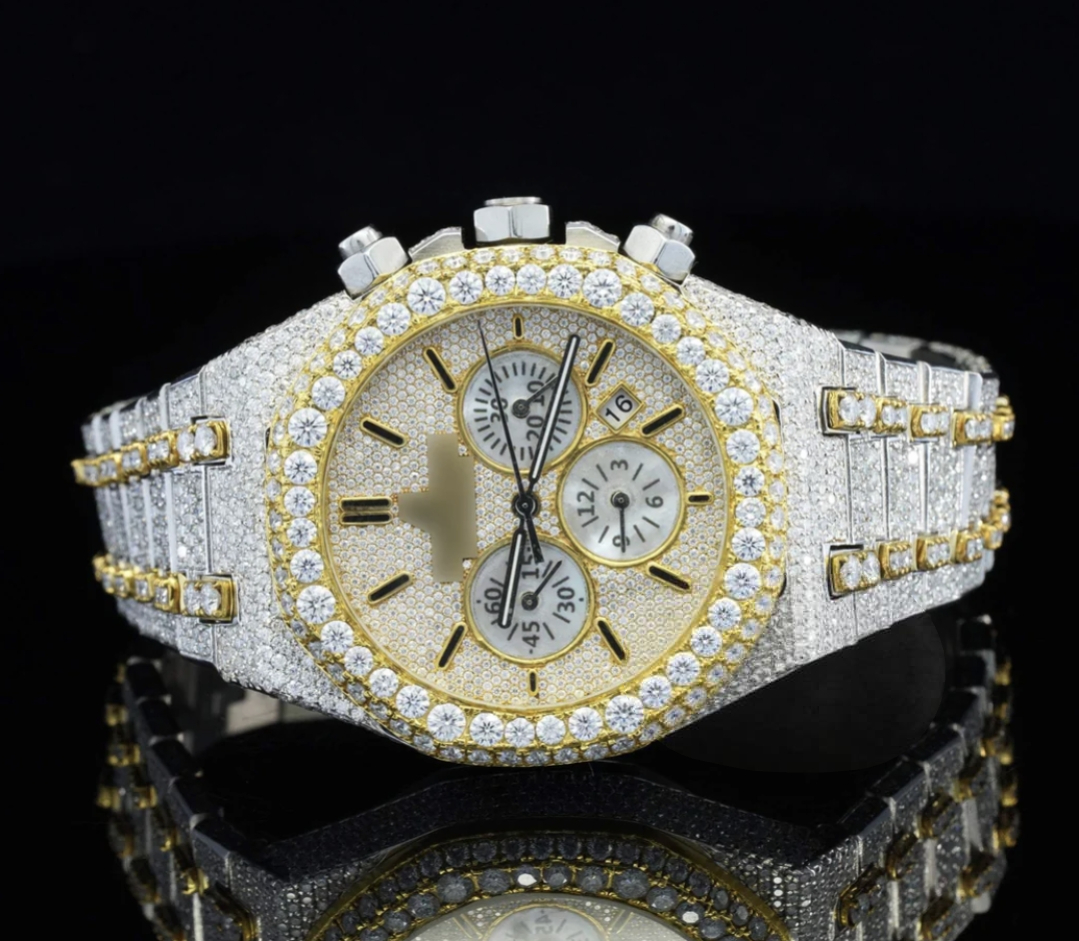 Designed for those who love bold hip hop jewelry and luxury watches, this fully iced-out moissanite watch