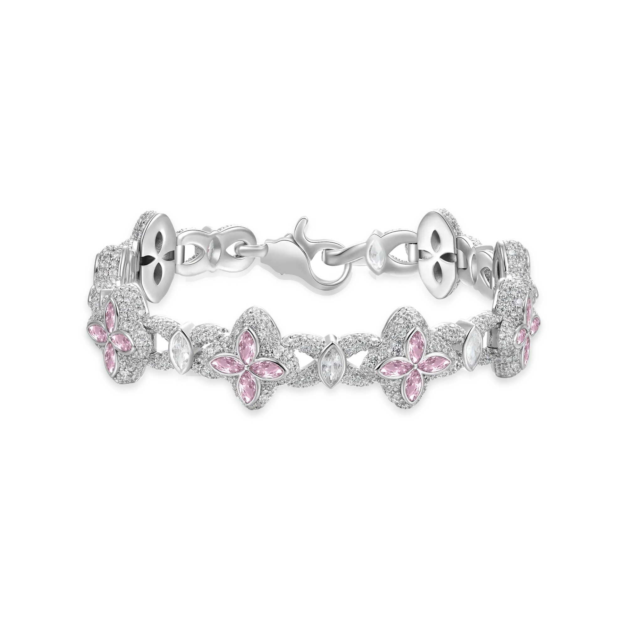 Premium Moissanite Luminous Clover Bracelet – Pink Diamond