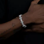 The Premium Moissanite Luminous Clover Bracelet – Pink Diamond is a classic clover-inspired design with sparkling moissanite stones that look like diamonds. It is light and elegant, and it gives a touch of grace to any outfit. This bracelet is made to last and be comfortable, so you may wear it every day or on special occasions.