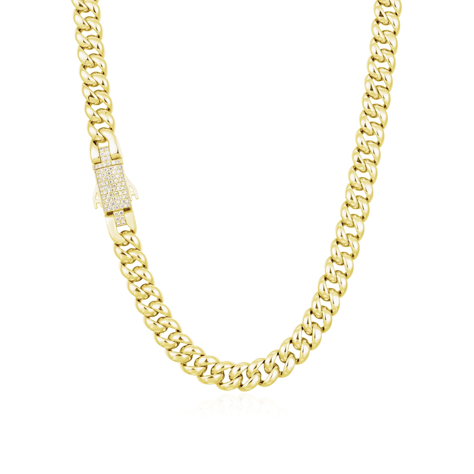 Solid Gold Cuban Link Chain with Moissanite Clasp – 8mm